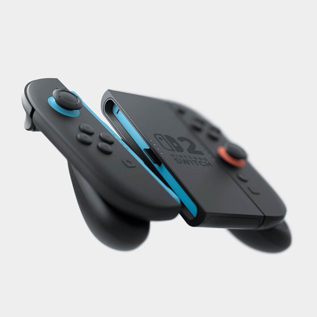 The redesigned Joy-Con 2 controllers now use a magnetic connection for a more secure fit. Simply press a rear release button to detach them. Buttons — including the SL/SR set and thumbsticks — are larger for improved comfort, and Nintendo is introducing a mouse-style control mode for games that benefit from alternative input styles.